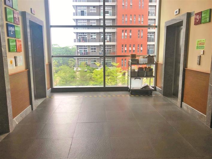上周五記者來到事發(fā)現(xiàn)場(chǎng),長廊中的餐車均已撤走,但明顯可看出,若擺上餐車,狹窄的長廊必定會(huì)對(duì)園中幼童產(chǎn)生安全隱患。校方表示,目前已選定學(xué)校教學(xué)樓電梯前一處空閑區(qū)域作為餐車放置區(qū),該區(qū)域較為寬闊,且孩子們少在此處上下,相對(duì)安全;就餐時(shí)間之外,學(xué)校也會(huì)將餐車撤離教學(xué)活動(dòng)區(qū)域。