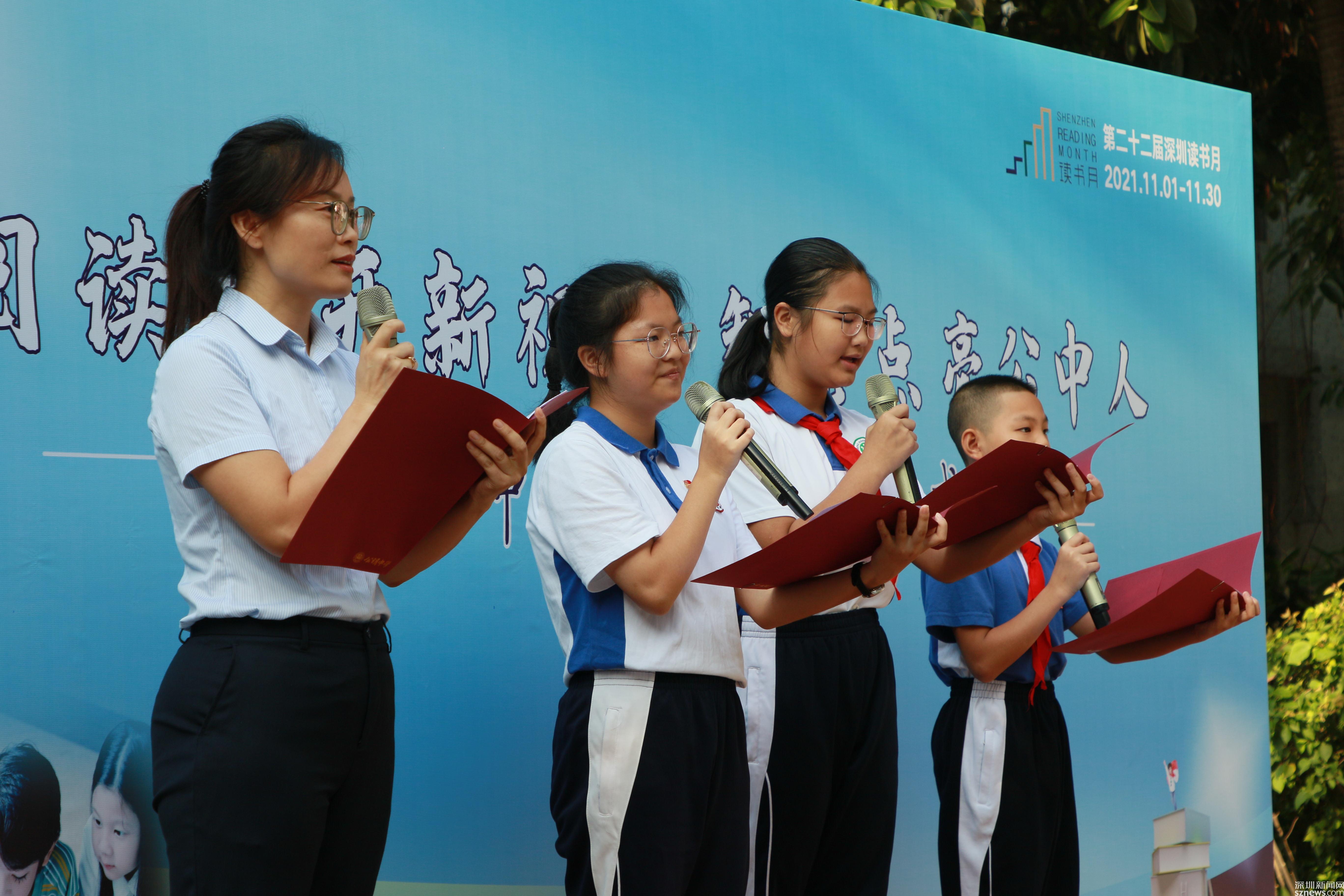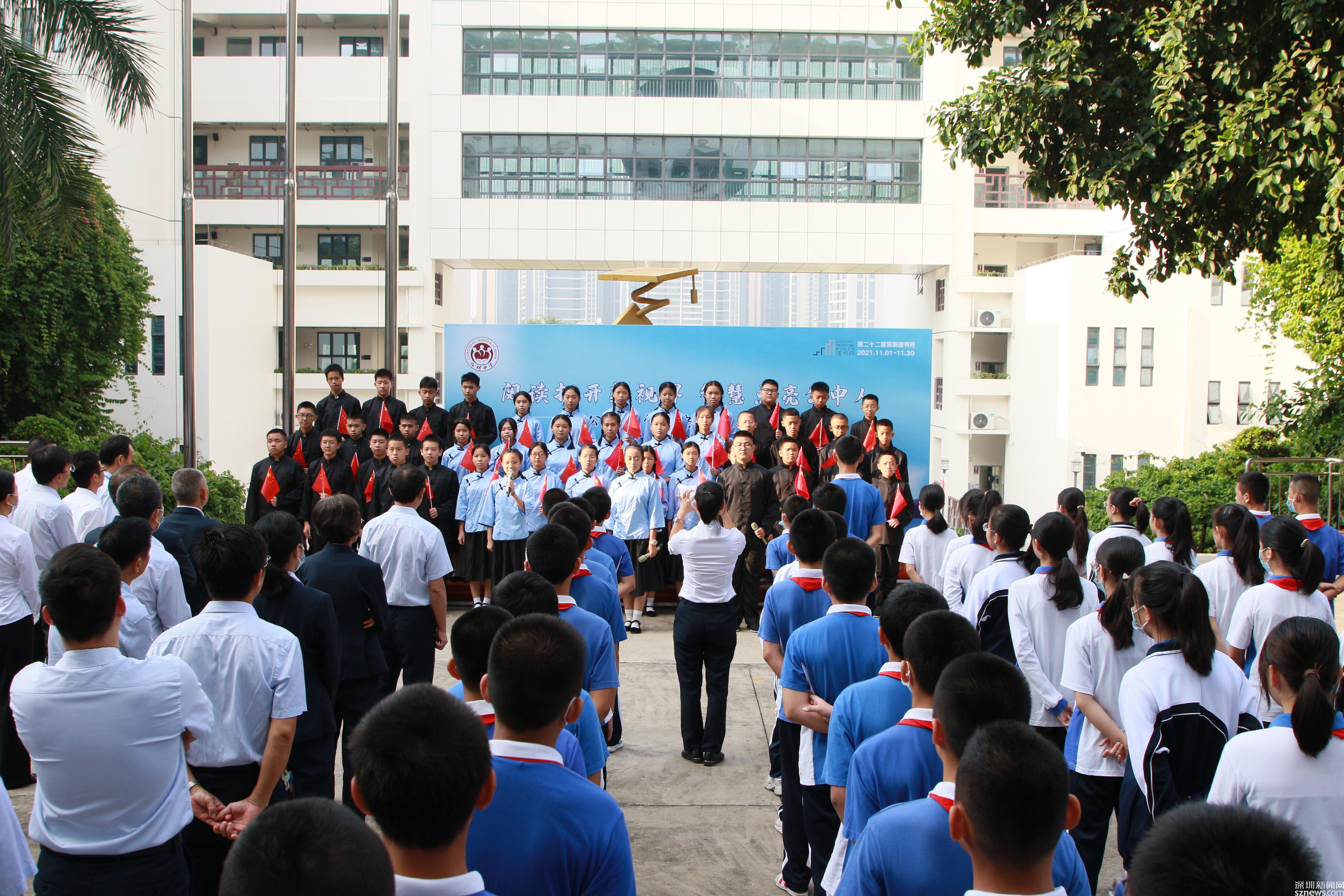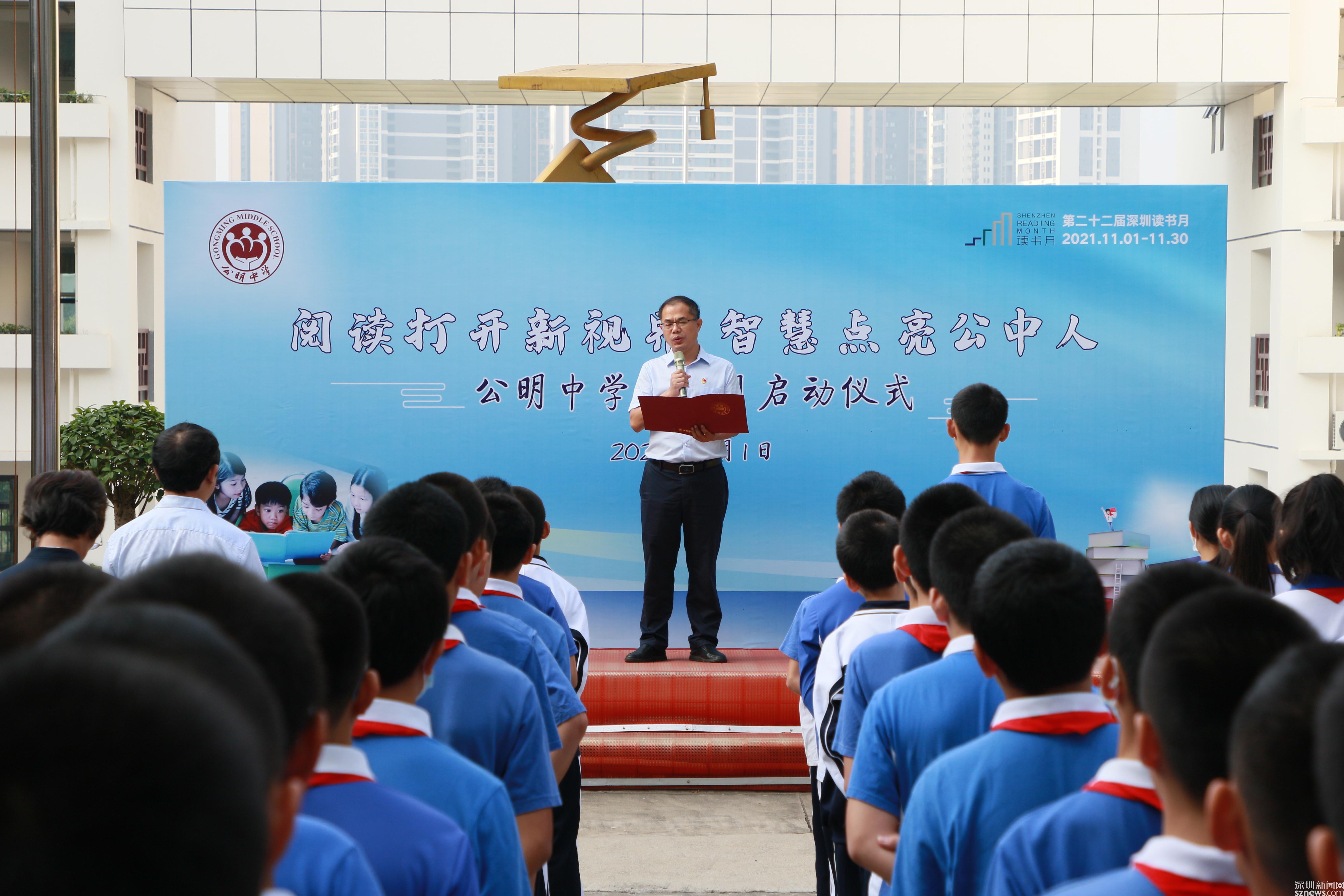 讀特客戶端·深圳新聞網(wǎng)2021年11月2日訊 (記者 曹園芳 通訊員 丘翹楚 劉小云 曾靜敏)為弘揚“尊重知識崇尚文明”的閱讀理念,培養(yǎng)師生良好的閱讀習(xí)慣,營造智雅的學(xué)習(xí)氛圍,塑造濃郁書香學(xué)習(xí)型校園,11月1日上午,深圳市光明區(qū)公明中學(xué)組織開展了本年度讀書月啟動儀式,全校師生參加了活動,活動由初二(5)班譚欣怡同學(xué)主持。