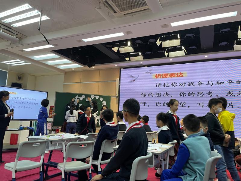 上午8:30分,益田小學一樓禮堂內首先進行室內升旗儀式,在場師生滿懷祭奠之情,為受難者默哀一分鐘,致敬逝者,寄托民族哀思。接著,四(3)班中隊表演了相關詩朗誦以及“銘記歷史,努力學習宣誓“活動,最后,益田小學名師、福田區(qū)品牌課程主持人嚴霞老師帶領學生上了一節(jié)別開生面的思政課 《和平是什么》,嚴老師通過閱讀相關繪本和文字,以及學生喜聞樂見的講故事、繪本閱讀、觀看視頻等多樣的教學方式,引導學生了解公祭日的由來,思考、感知戰(zhàn)爭的慘痛與和平的可貴,時刻謹記中國遭受過的屈辱歷史決不能重演!