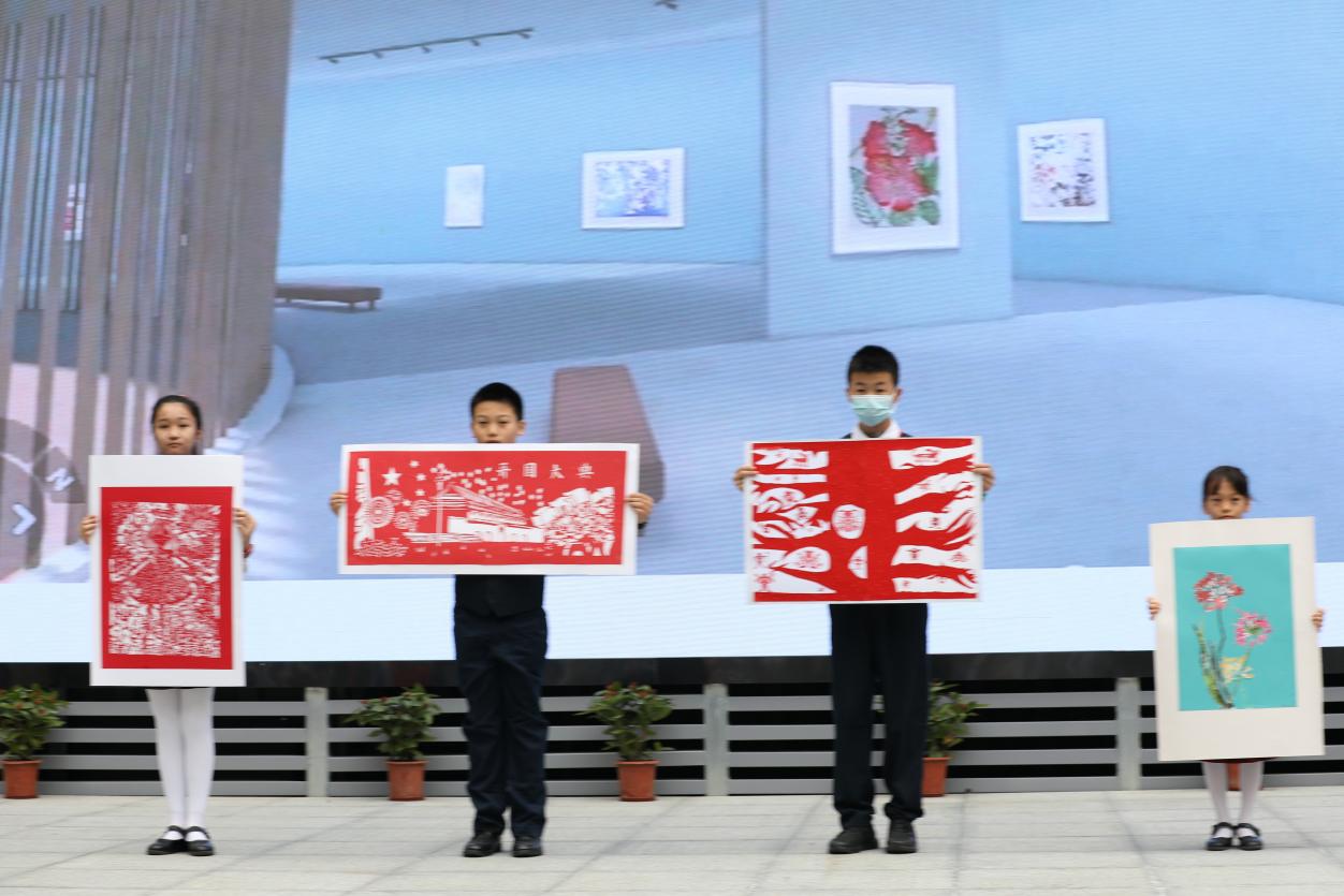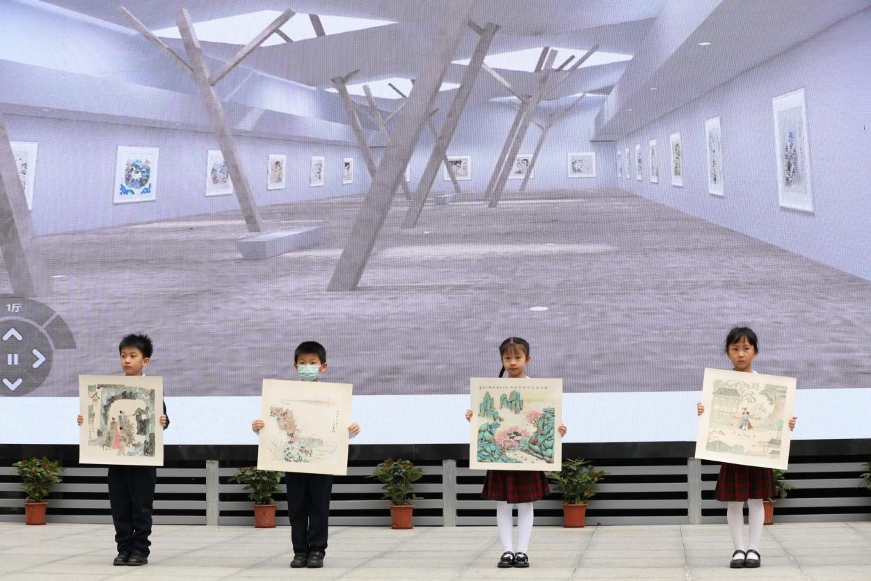 與開館和展覽同時推出的,還有“榕”美術(shù)館的云展館。云展館以新媒體形式,擴大了展覽范圍,使得學(xué)校的美術(shù)美育成果得以向外部展示。推出之際,學(xué)校舉行了云展館的剪彩儀式。解署昱校長致辭并宣布開館,福田區(qū)教科院藝術(shù)辦林影萍主任、解署昱校長、劉權(quán)祥副校長、姚紅霞副校長為云美術(shù)館剪彩,并向全校學(xué)生贈送了云展館資料。