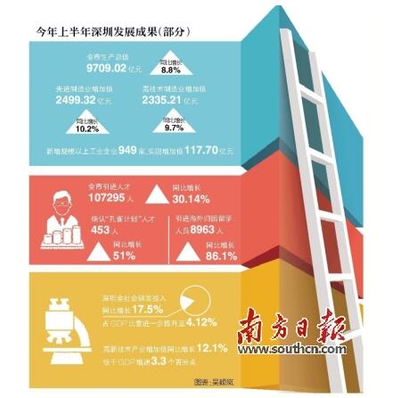 創(chuàng)新是深圳率先實現(xiàn)成功轉型的亮麗名片,是深圳率先實現(xiàn)動力轉換的制勝秘訣。如果說,作為特區(qū),深圳之“特”過去更多地體現(xiàn)在政策探路,那么,現(xiàn)在則更多體現(xiàn)在轉型創(chuàng)新。近年來,深圳經(jīng)濟特區(qū)把創(chuàng)新作為城市主導戰(zhàn)略,先后制定了全國首部國家創(chuàng)新型城市總體規(guī)劃和促進科技創(chuàng)新的地方性法規(guī),出臺自主創(chuàng)新“33條”、創(chuàng)新驅動發(fā)展“1+10”若干措施等一系列政策措施。經(jīng)過多年不懈的努力,深圳創(chuàng)新驅動發(fā)展取得了積極成效,創(chuàng)新正加快向高端前沿邁進,從跟跑、并跑向領跑躍升。在創(chuàng)新的驅動下,深圳實現(xiàn)了新常態(tài)下動力轉換和新一輪轉型升級,保持了有質量、有效益、可持續(xù)的發(fā)展。事實為證:今年上半年,深圳全社會研發(fā)投入增長17.5%,占GDP比重進一步提升至4.12%;高新技術產業(yè)增加值增長12.1%,快于GDP增速3.3個百分點,呈現(xiàn)出“逐季攀高、質量提升、結構優(yōu)化、動力增強、趨勢向好”的鮮明特點。