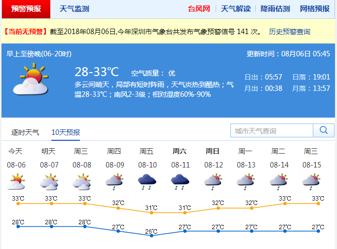 深圳新聞網(wǎng)訊 盡管出現(xiàn)陣雨,但鵬城昨日氣溫仍居高不下,最高氣溫升至33℃左右。本周前期,炎熱到酷熱,偶有短時陣雨,市民應(yīng)注意防暑降溫。后期,降雨增多,氣溫回落。