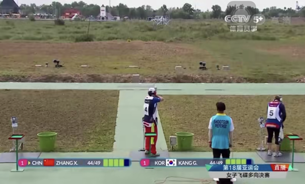 第十組比賽,張鑫秋與康金允前四靶都打中,第五靶張鑫秋率先出槍,打中,隨后出槍的康金允稍顯緊張,結(jié)果打失。這樣,張鑫秋以45靶破亞運(yùn)會(huì)成績奪得冠軍,康金允獲得亞軍。