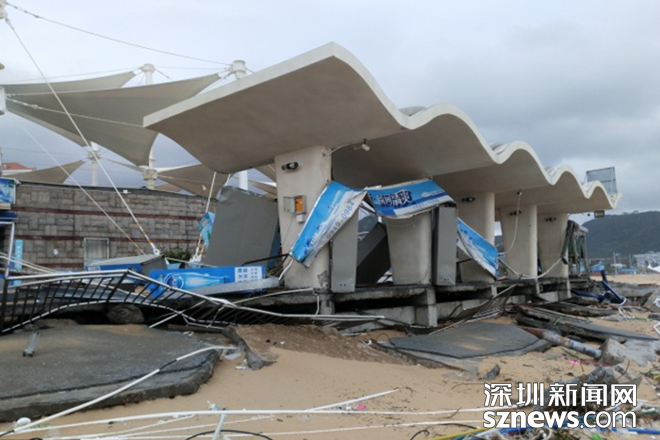 小梅沙旅游度假村景區(qū)內(nèi)沙灘海沙被卷走超7萬多立方,約2000米的堤岸及道路沖垮,公共、建筑設(shè)施及構(gòu)筑物全部受損,部分完全損毀,13處經(jīng)營管理場(chǎng)所損毀,綠化、樹木等嚴(yán)重破壞,直接經(jīng)濟(jì)損失預(yù)估超過5000萬元。