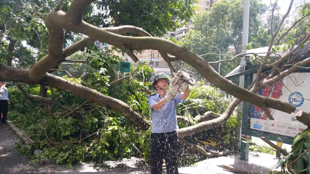 從臺(tái)風(fēng)前到臺(tái)風(fēng)后,唐順華一直在一線。他不僅是一個(gè)指揮員,還是一名戰(zhàn)斗員,一起去處理倒伏樹木、清理路障。因?yàn)槿耸址浅S邢?,他不僅一直要組織指揮,自己也一直身體力行,連續(xù)90多個(gè)小時(shí)沒(méi)有回家,一直在轄區(qū),排查隱患,處理事情。