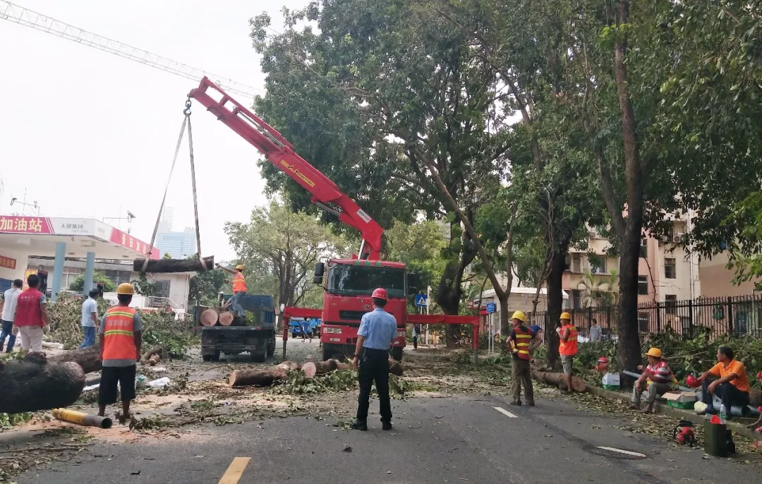 17日開始,獅嶺小學(xué)附近道路完成清理,商報(bào)路完成清理,紅荔枝西路恢復(fù)通車,景田西路安全通行……自臺(tái)風(fēng)后,從主道到輔道,從社區(qū)到學(xué)校,一處處路障迅速得到清理,而此時(shí),臺(tái)風(fēng)裹挾的風(fēng)雨仍在繼續(xù)?!案黜?xiàng)恢復(fù)工作比我想象得要順利很多。比如20日這條景田西路,我估摸著要到下午6點(diǎn)才能清理完。但實(shí)際上,我們下午兩三點(diǎn)就差不多弄完可以進(jìn)行最后的清掃了?!碧祈樔A說(shuō),“附近的施工單位、物業(yè)公司、社區(qū)工作站,還有隨時(shí)加入進(jìn)來(lái)的快遞小哥、外賣小哥、經(jīng)過(guò)的熱心市民等,大大加快了我們的清理速度?!?/p>