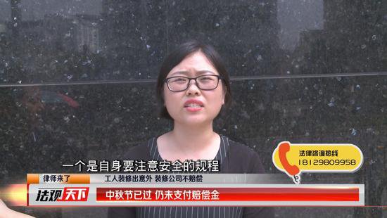 中秋節(jié)已經(jīng)過去3天了,截至記者發(fā)稿,蜂巢裝飾有限公司仍未支付給受傷工人朱先生第一筆賠償金。工友朱先生已經(jīng)很寒心,他說自己怎么都想不到蜂巢裝飾公司會(huì)這樣沒有誠信,《法觀天下》嘉賓律師趙乙橋表示,根據(jù)《深圳市建筑施工行業(yè)參加工傷保險(xiǎn)的管理辦法》,她建議施工方能夠及時(shí)的給工人購買意外保險(xiǎn),如遇類似的意外可以有效地分擔(dān)賠償。(記者鄭興)