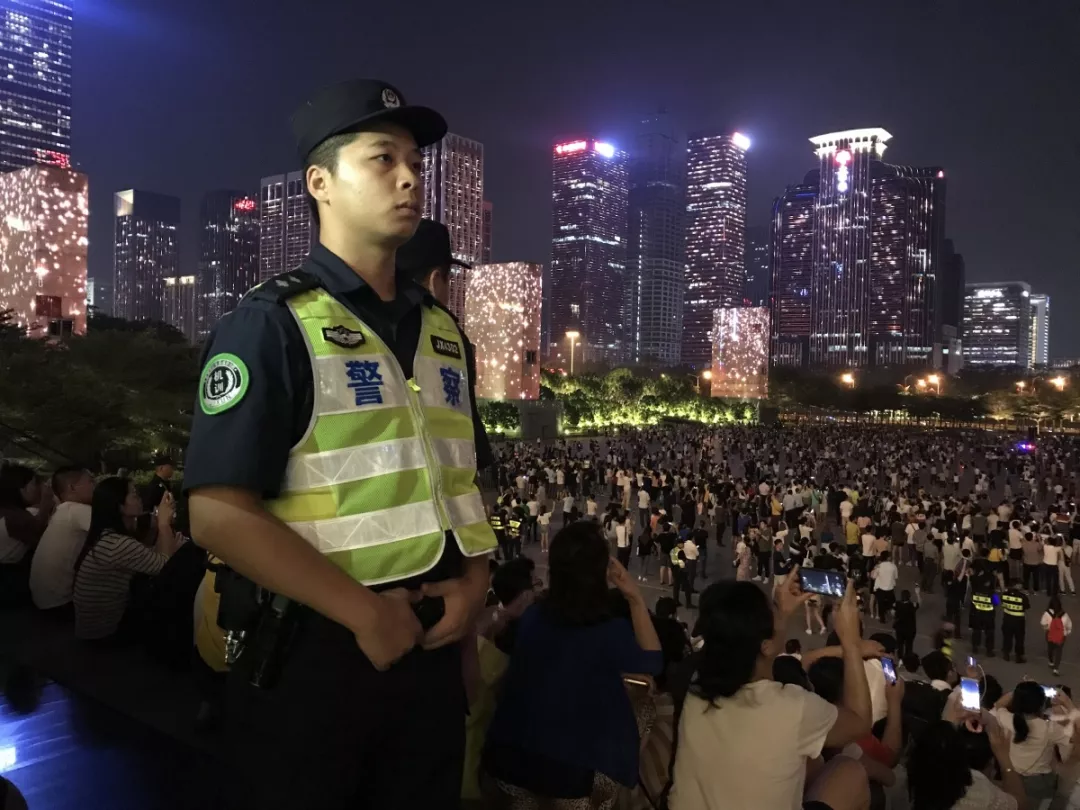 “燈光秀”活動正式表演首日,現(xiàn)場觀演人數(shù)約54300人,福田公安分局出動1000名警力在現(xiàn)場及周邊維持秩序,確?;顒禹樞蚺e行。