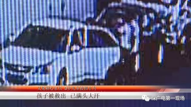 孩子被救出已滿頭大汗2分鐘后,車主章先生從工廠內(nèi)跑出來(lái),打開車門,救出了孩子,而當(dāng)時(shí)孩子已經(jīng)滿頭大汗,非常虛弱了。