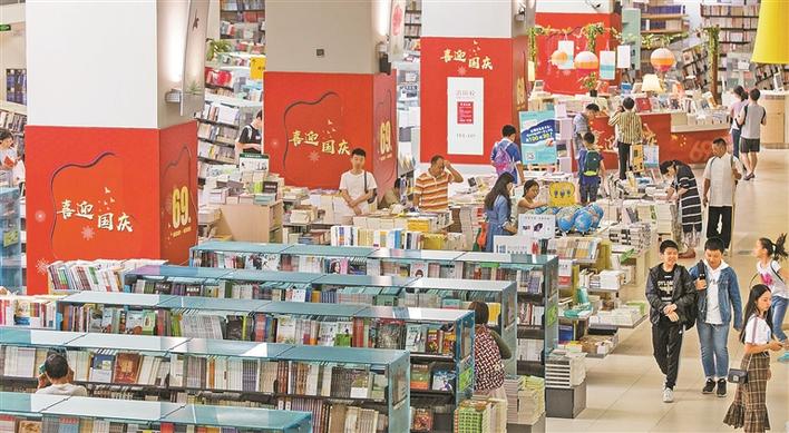 深圳書城中心城隨處可見慶祝國慶的主題裝飾。