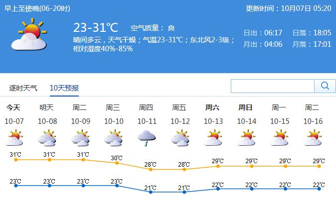 預(yù)計10月7-9日我市多云間晴天,氣溫23℃-31℃,空氣濕度將略有回升,但最小相對濕度仍在50%或以下,干燥天氣持續(xù)。未來三天天氣總體穩(wěn)定,氣溫波動不大,適合外出活動,戶外活動需多補(bǔ)充水分,適當(dāng)做好護(hù)膚措施。