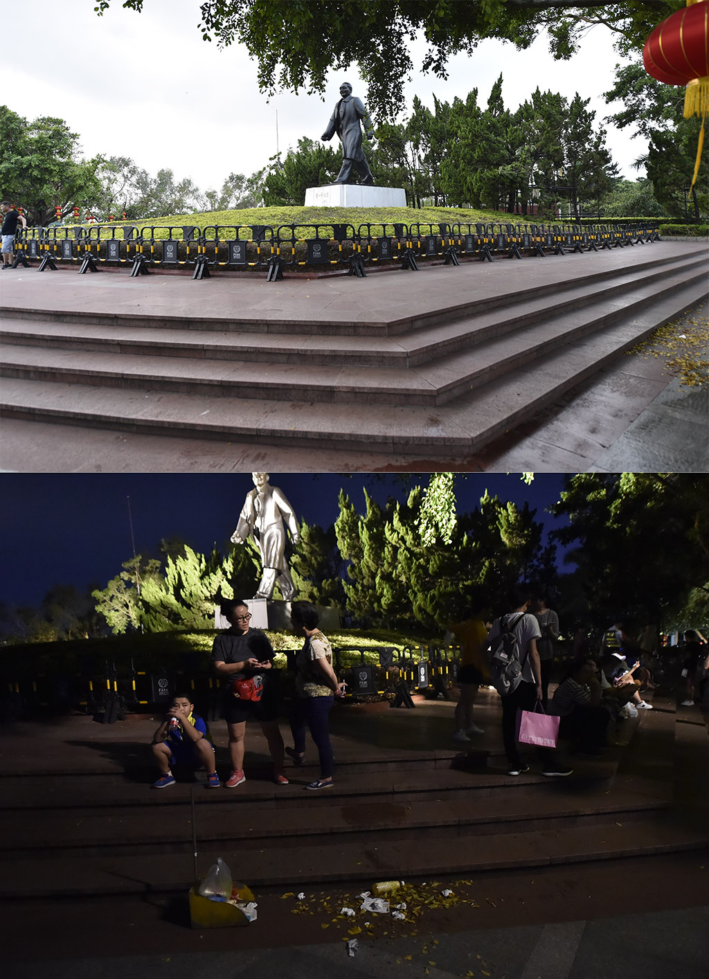 鄧小平雕塑右側,燈光秀結束后垃圾迅速被責任環(huán)衛(wèi)工人清掃