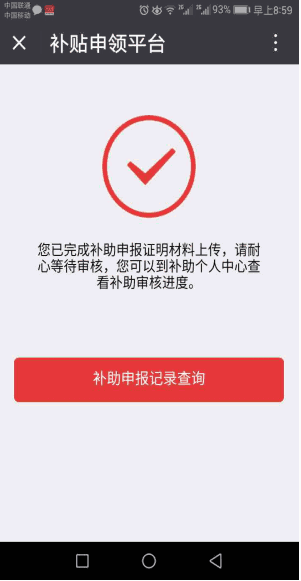 第五步:完成補助預(yù)登記后,點擊【補助申報記錄查詢】即可查詢個人補助申請進(jìn)度了。
