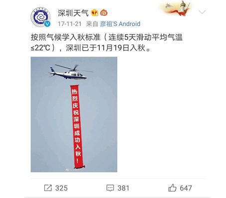 雖然深圳積極嘗試了入秋,但這場弱冷空氣并不妨礙深圳入秋失?。∫驗榘礆夂?qū)W劃分標(biāo)準(zhǔn):以5天滑動平均氣溫穩(wěn)定 ,22 ℃才是秋季的開始。深圳平均入秋時間在11月3日,去年更是在11月19日才入秋成功。