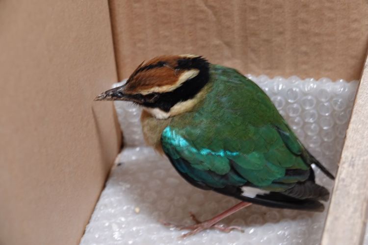 10月16日上午,在南山一超市門口,路邊一個小綠影引起了趙女士的注意,她走上前一看,原來是一只有著翠綠色、寶藍(lán)色羽毛的小萌鳥,這只小鳥有人的手掌那么大,在路人的腳邊徘徊著,“就像是迷了路的小孩。”趙女士說。