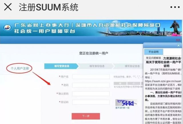 3、若無,點擊"新用戶注冊",進入到深圳市人力資源和社會保障局社會統(tǒng)一用戶基礎(chǔ)平臺(https://suum.szsi.gov.cn/suum)。