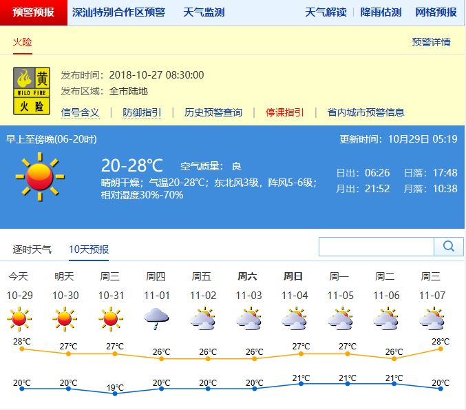 受偏北干燥氣流影響,28-30日我市晴天干燥,晝夜溫差大,早晚清涼,沿海最大陣風(fēng)6級;31日-11月2日受“玉兔”和冷空氣共同影響,我市沿海和高地平均風(fēng)力6-7級,偏北陣風(fēng)8-9級。3日風(fēng)力減弱。
