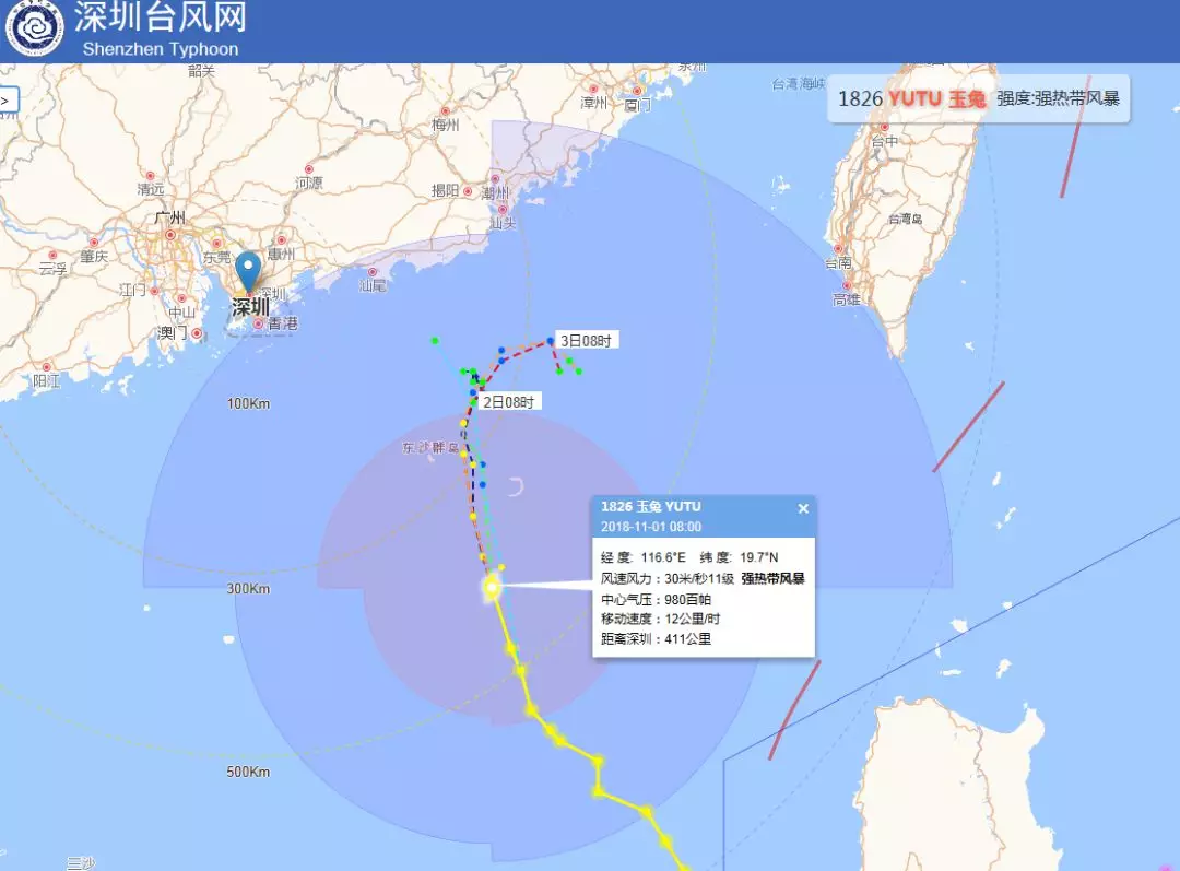 臺風(fēng)“玉兔”的結(jié)局似乎已經(jīng)注定,但即便它正在減弱,“玉兔”終究還是既有名字又有正式編制的第26號臺風(fēng),各位仍然不可掉以輕心!深圳市氣象臺已于2018年10月31日17時30分將鹽田區(qū),大鵬新區(qū),西部海區(qū)和東部海區(qū)臺風(fēng)白色預(yù)警升級為藍(lán)色。