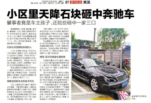 沒想到,最后得知原來(lái)是自己的小孩貪玩,從一樓施工處拿走了石塊,結(jié)果不小心砸了自家的車。