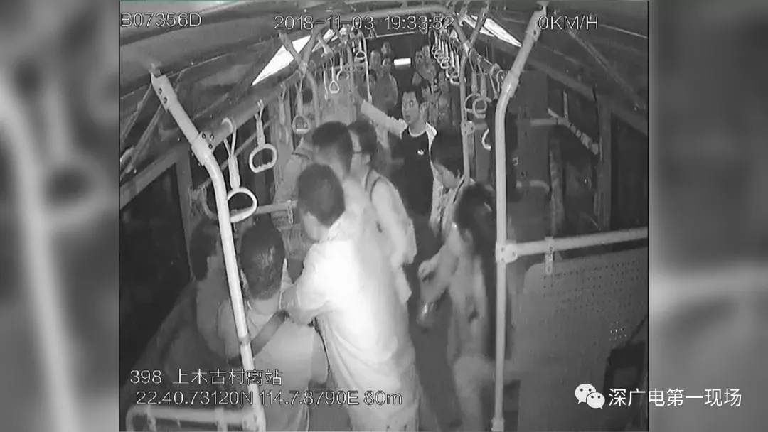 同時,周圍許多其它乘客也進(jìn)行勸阻,但是就在一名女乘客試圖制止這名打人的男子時,這名男子竟然又提腳踢了這名女乘客的腹部。當(dāng)班駕駛員立即選擇報警,隨后華南城警務(wù)室民警將涉事男子帶走。