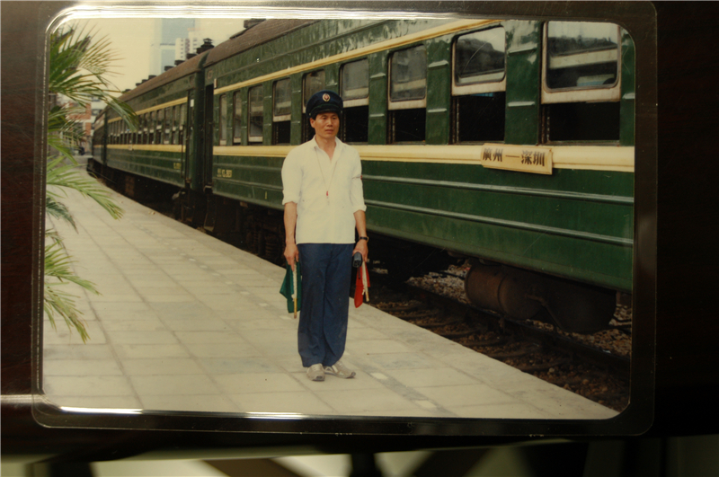 90年代,廣深線開(kāi)行的列車(chē)為綠皮火車(chē)。圖中站內(nèi)指揮員引導(dǎo)列車(chē)