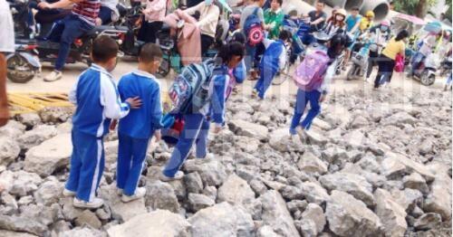 另有網(wǎng)友跟帖表示:同學(xué)們求學(xué)路坎坷,看得揪心!從現(xiàn)場圖可以看到,學(xué)生上下學(xué)都要穿過工地。路面被挖開,道路邊上只留下很窄的一條小道。上下學(xué)高峰期,成群結(jié)隊的學(xué)生在碎石穿行,旁邊小道上行人、三輪、電動單車堵成一鍋粥,存在很大的安全隱患。