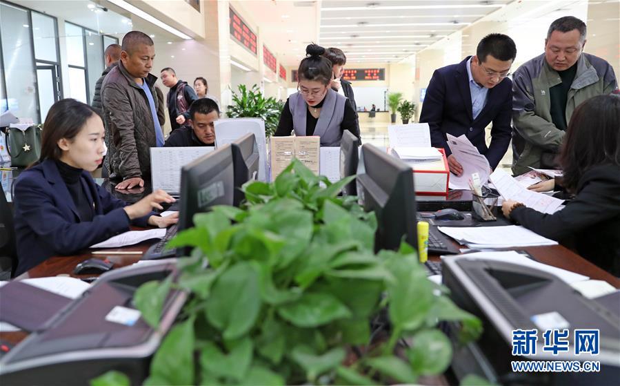 在中國(遼寧)自由貿(mào)易試驗區(qū)營口片區(qū)政務(wù)服務(wù)中心,眾多企業(yè)代表咨詢注冊(11月20日攝)。
