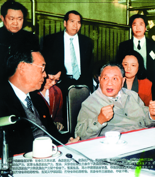 1992年1月20日,小平同志登上國貿(mào)大廈旋轉(zhuǎn)餐廳,聽取時(shí)任市委書記李灝的匯報(bào)并發(fā)表談話。(