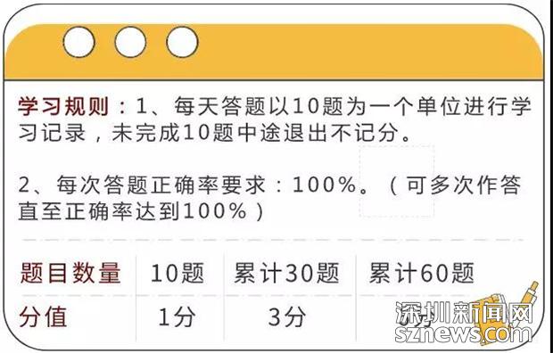 值得注意的是,申請(qǐng)減分學(xué)習(xí)的駕駛必須符合駕駛證準(zhǔn)駕車(chē)型為C1、C2、C3,車(chē)輛所屬地和違法發(fā)生地均為深圳,累計(jì)記分≤9分(一次性記滿12分,或已經(jīng)累計(jì)達(dá)到12分的駕駛?cè)顺猓┑臈l件,符合這些條件的即可進(jìn)入“深圳交警星級(jí)用戶——微課堂——消分學(xué)習(xí)——答題攢分”進(jìn)行減分學(xué)習(xí)。每天答題以10題為一個(gè)單位進(jìn)行學(xué)習(xí)記錄,未完成10題中途退出不記分,每次答題正確率要求為100%,即答對(duì)10題可獲得1分,累計(jì)答對(duì)30題可獲得3分,累計(jì)答對(duì)60題可獲得6分。