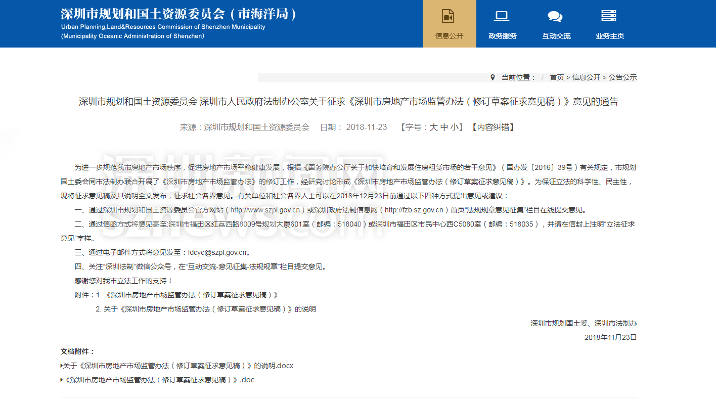 據了解,深圳市規(guī)土委會同市法制辦聯合開展了《深圳市房地產市場監(jiān)管辦法》的修訂工作,形成《深圳市房地產市場監(jiān)管辦法(修訂草案征求意見稿)》(以下簡稱《辦法意見稿》)。記者注意到,此次修訂的大背景是落實國家“房住不炒”的目標要求,加上國務院取消了房地產經紀人資格管理制度、深圳市取消了房地產行業(yè)年檢制度而實行年報制度,原監(jiān)管辦法自2010年以來,已實施近8年,相關規(guī)定已不合時宜,亟需結合新的形勢和要求進行修訂完善。