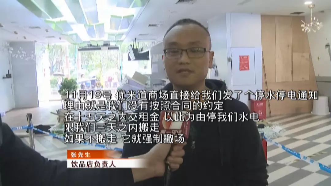記者在飲品店墻上看到了一則通知,優(yōu)米道商場以飲品店拖欠租金為由與其解約,限飲品店在11月23日15點(diǎn)前自行離場,到期不按時騰空鋪位,飲品店將要承擔(dān)由此產(chǎn)生的一切損失和后果。