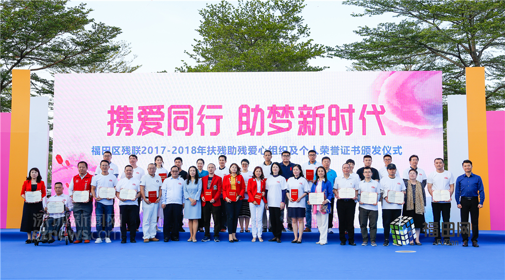 福田區(qū)扶殘愛心組織及個人與領(lǐng)導(dǎo)嘉賓合影。