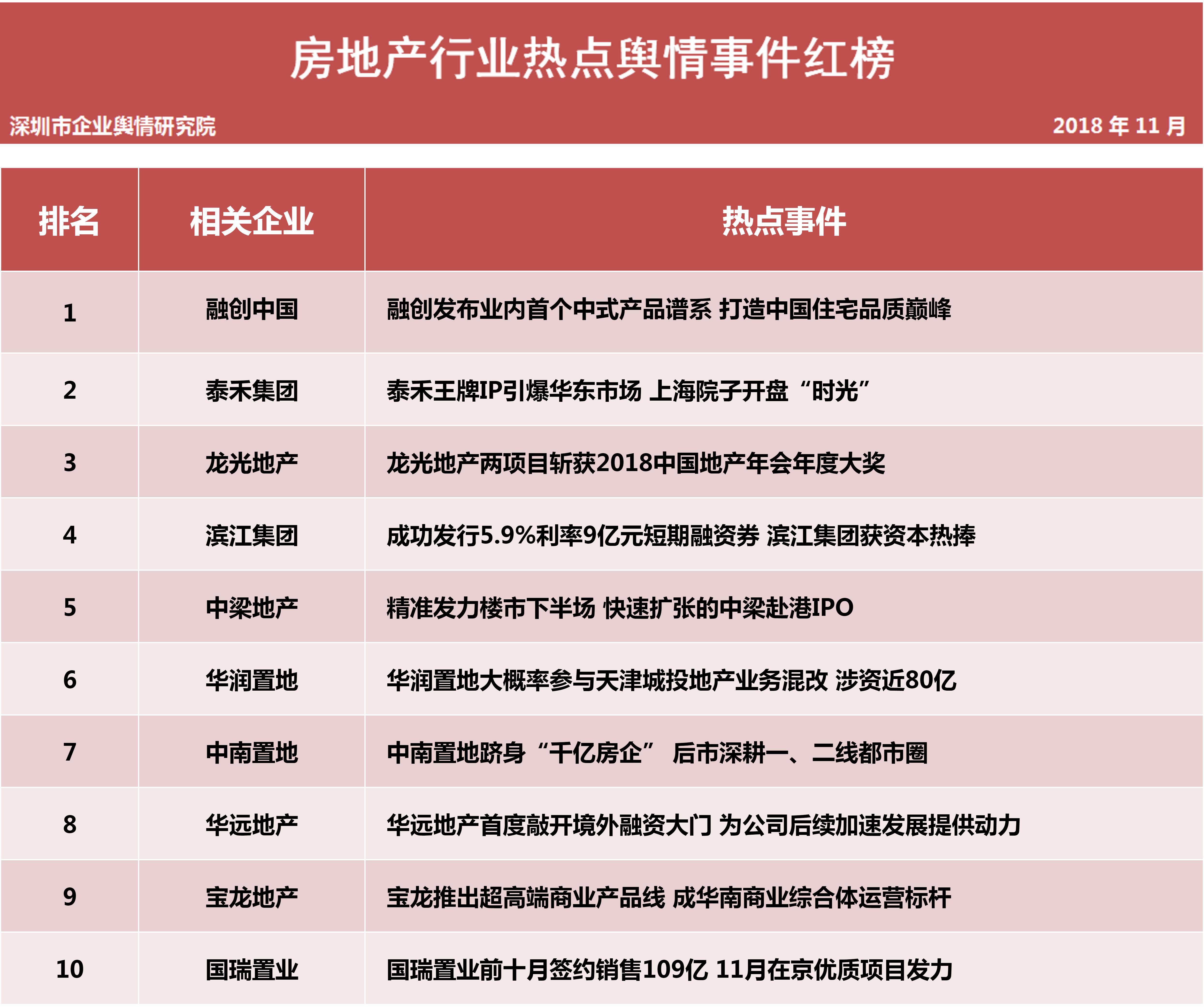 第十批企業(yè)輿情榜單(房地產(chǎn)行業(yè))今日發(fā)布融創(chuàng)中國(guó)好消息不斷萬(wàn)科“一門未平”又開“一門”