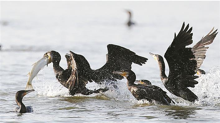 日前,數(shù)萬只普通鸕鶿來到深圳灣捕食。據(jù)深圳市觀鳥協(xié)會(huì)田老師介紹,每到冬季普通鸕鶿從北方來到深圳過冬,來年春季返回北方繁衍生息。