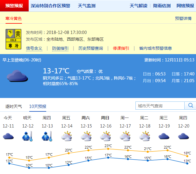 市氣象局發(fā)布未來(lái)十天天氣預(yù)報(bào)(數(shù)據(jù)更新于12月11日5時(shí)13分)