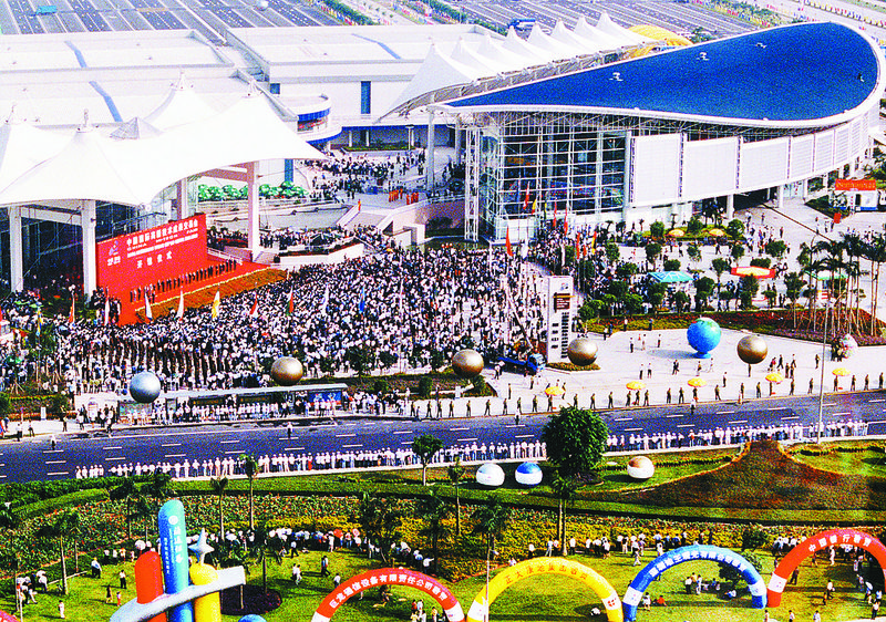 2004年,首屆深圳國(guó)際文化產(chǎn)業(yè)博覽會(huì)開幕式現(xiàn)場(chǎng)。丁慶林?jǐn)z
