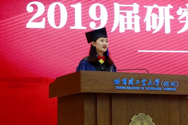 學(xué)生代表、土木與環(huán)境工程學(xué)院碩士畢業(yè)生劉雨熹感謝母校的悉心指導(dǎo)和精心栽培。她回憶起在哈工大(深圳)學(xué)習(xí)、生活的點點滴滴時說到,與同學(xué)們在浩如煙海的文獻經(jīng)典里刻苦專研、實驗室里通宵達旦的畫面歷歷在目,轉(zhuǎn)眼卻到了分別時刻。在今后的人生路上,她希望與畢業(yè)生一道為民族復(fù)興鋪路架橋,為祖國建設(shè)添磚加瓦!