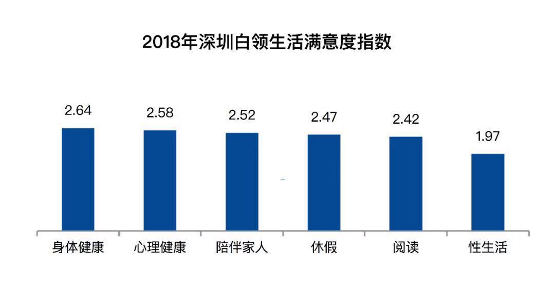 另外,根據(jù)調(diào)查,深圳白領(lǐng)對(duì)自己身體健康狀況的滿意度最高,對(duì)自己的性生活最不滿意。性生活雖然是一個(gè)隱秘的話題,但是卻又是決定白領(lǐng)生活質(zhì)量很重要的一環(huán),工作壓力大、經(jīng)濟(jì)壓力大也是深圳白領(lǐng)無暇戀愛,不能有太多精力經(jīng)營兩性關(guān)系的重要原因,如何在中間找到平衡點(diǎn),需要企業(yè)和雇員一起思考。
