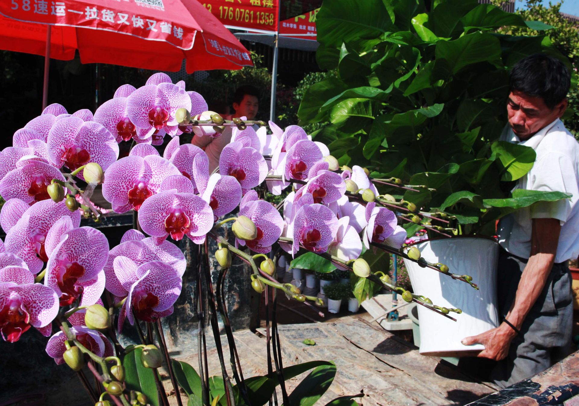 當(dāng)天的龍崗東部花卉世界,到處花團(tuán)錦簇,一盆盆顏色各異的年花喜迎初春,整個(gè)市場(chǎng)充滿了春天蓬勃的氣息?;ㄞr(nóng)們正忙著搬運(yùn)、擺放盆栽,不時(shí)有市民前來(lái)問(wèn)詢(xún),花卉運(yùn)輸一輛接一輛車(chē),絡(luò)繹不絕,往來(lái)的客商頻頻詢(xún)問(wèn)價(jià)格,已經(jīng)搶占先機(jī)的客商興高采烈地精心挑選,包裝搬運(yùn)……