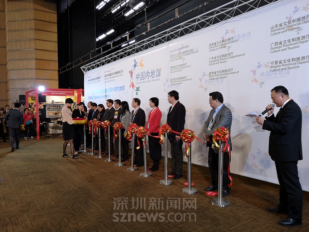 深圳報業(yè)集團總經(jīng)理、深圳華薈國際文化傳播有限公司董事長王躍軍等為內(nèi)地館開館剪彩