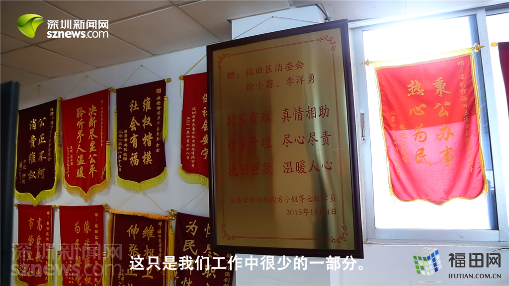 錦旗只代表福田區(qū)消委會(huì)工作中很少的一部分,12個(gè)工作人員每年處理上萬(wàn)宗投訴。