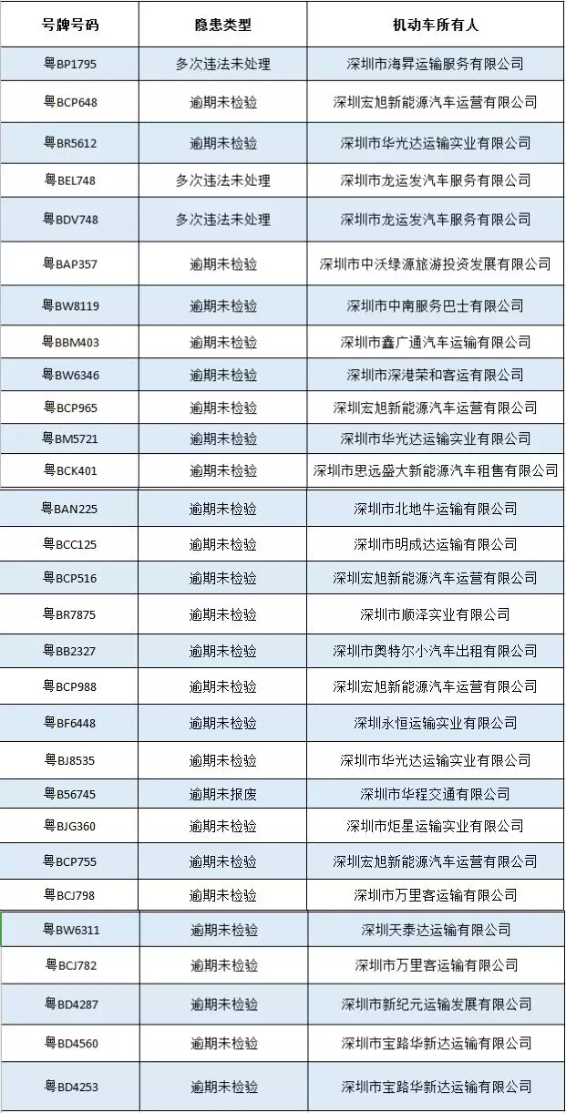 深圳新聞網(wǎng)2019年1月10日訊(記者何暢)據(jù)“深圳交警權(quán)威發(fā)布”微信公眾號消息,為嚴厲打擊大客車在春運期間的道路交通安全違法行為,通過對過往春運期間大客車的違法、事故、卡口和GPS檢查等數(shù)據(jù)建立模型進行挖掘,分析出一批隱患大客車,具體分析情況如下: