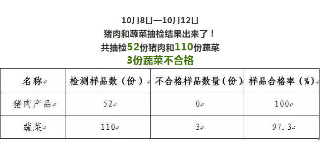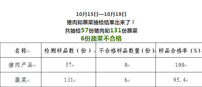 豬肉和蔬菜抽檢結(jié)果出來(lái)了!