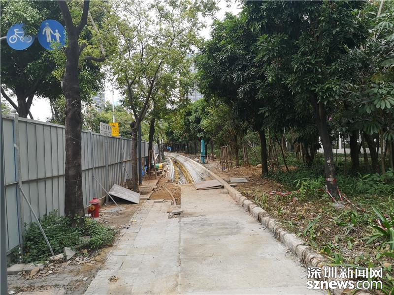 福田農(nóng)林路道路工程施工牌顯示,正在進行電纜溝擴建工程