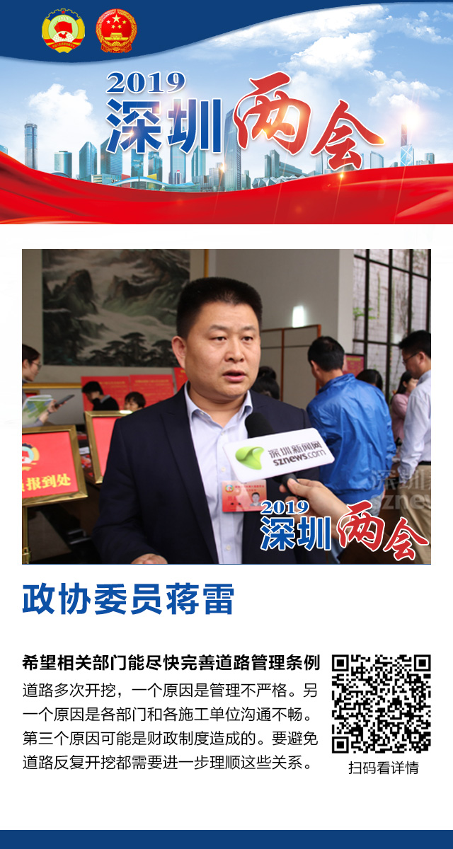 深圳新聞網(wǎng)2019年1月17日訊 深圳市政協(xié)六屆五次會(huì)議1月16日開幕,記者就全市范圍內(nèi)出現(xiàn)的道路反復(fù)開挖向政協(xié)委員們征求解決良方,委員們表示,在(道路反復(fù)開挖)這件事情上,我們每個(gè)人都是受害者。只有各部門一盤棋,讓規(guī)劃更有前瞻性,讓城市建設(shè)慢下來(lái),才能解決問(wèn)題,減少給市民生活帶來(lái)的各種不便。下面讓我們一起來(lái)看看委員們的觀點(diǎn)。