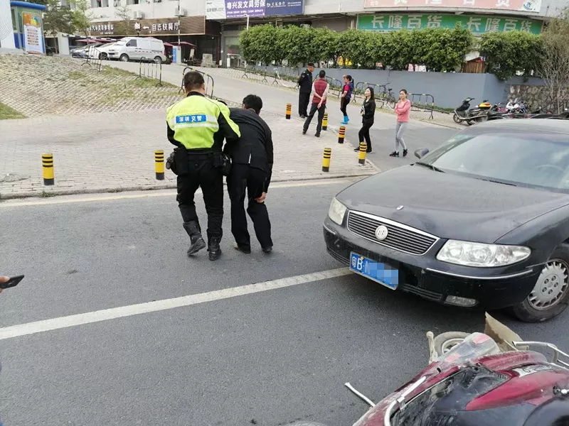 2 五旬大叔摔傷腳,鐵騎蜀黍攙扶走