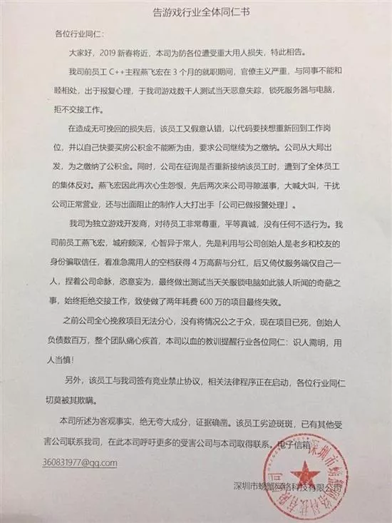 深圳晚報(bào)2019年1月23日訊 近日,深圳本地一家游戲公司,上了微博話題熱搜。