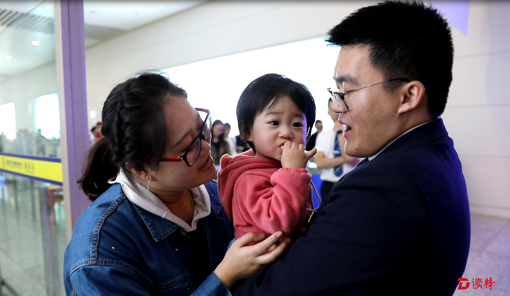 你下班時(shí)我接班!站臺(tái)上“交接”女兒的“春運(yùn)夫妻”