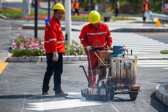 路面標(biāo)線正加緊施畫(huà)。