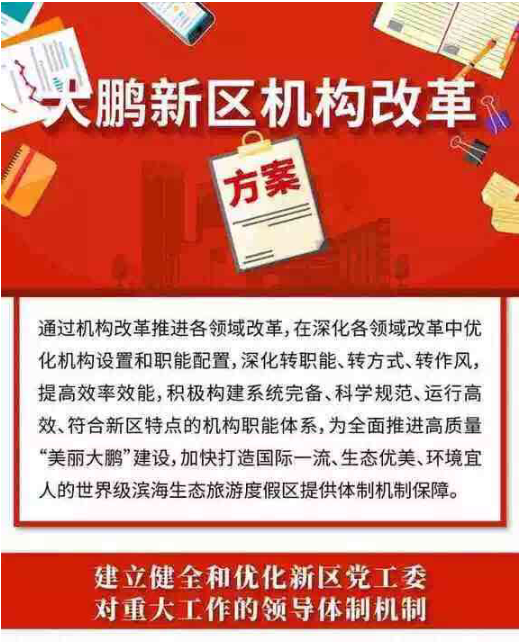 南方+2019年2月15日訊 近日,《大鵬新區(qū)機(jī)構(gòu)改革方案》有關(guān)機(jī)構(gòu)編制事項(xiàng)獲市機(jī)構(gòu)編制委員會(huì)批復(fù)同意,《方案》以新區(qū)黨工委、管委會(huì)名義正式印發(fā)。2月14日下午,大鵬新區(qū)機(jī)構(gòu)改革動(dòng)員部署會(huì)召開(kāi),對(duì)新區(qū)深化機(jī)構(gòu)改革工作進(jìn)行動(dòng)員部署,標(biāo)志著大鵬新區(qū)機(jī)構(gòu)改革工作進(jìn)入全面實(shí)施階段。